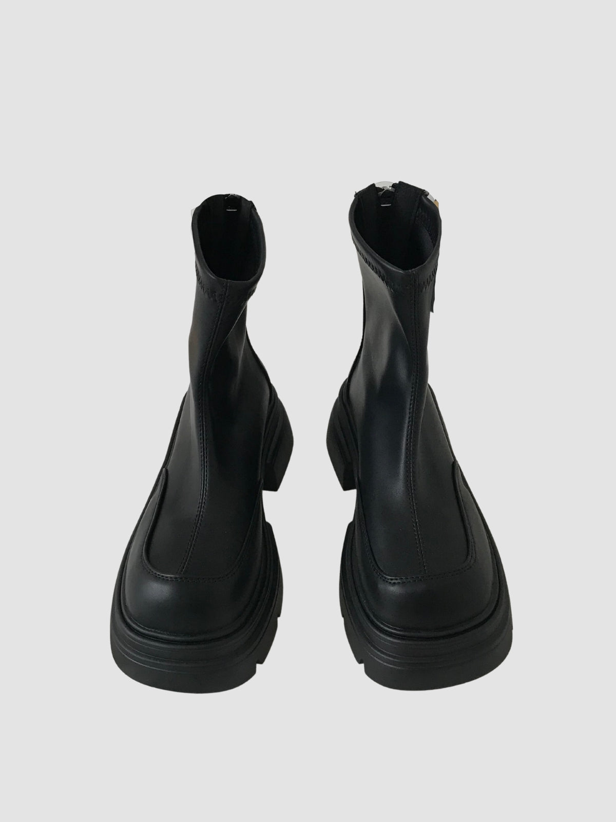 The Melody short boots feature a round toe and a medium platform heel for balanced proportion. The short barrel design creates a clean silhouette that pairs easily with trousers, skirts, or dresses. With a structured shape and minimal detailing, they adapt seamlessly from daily wear to casual evenings.