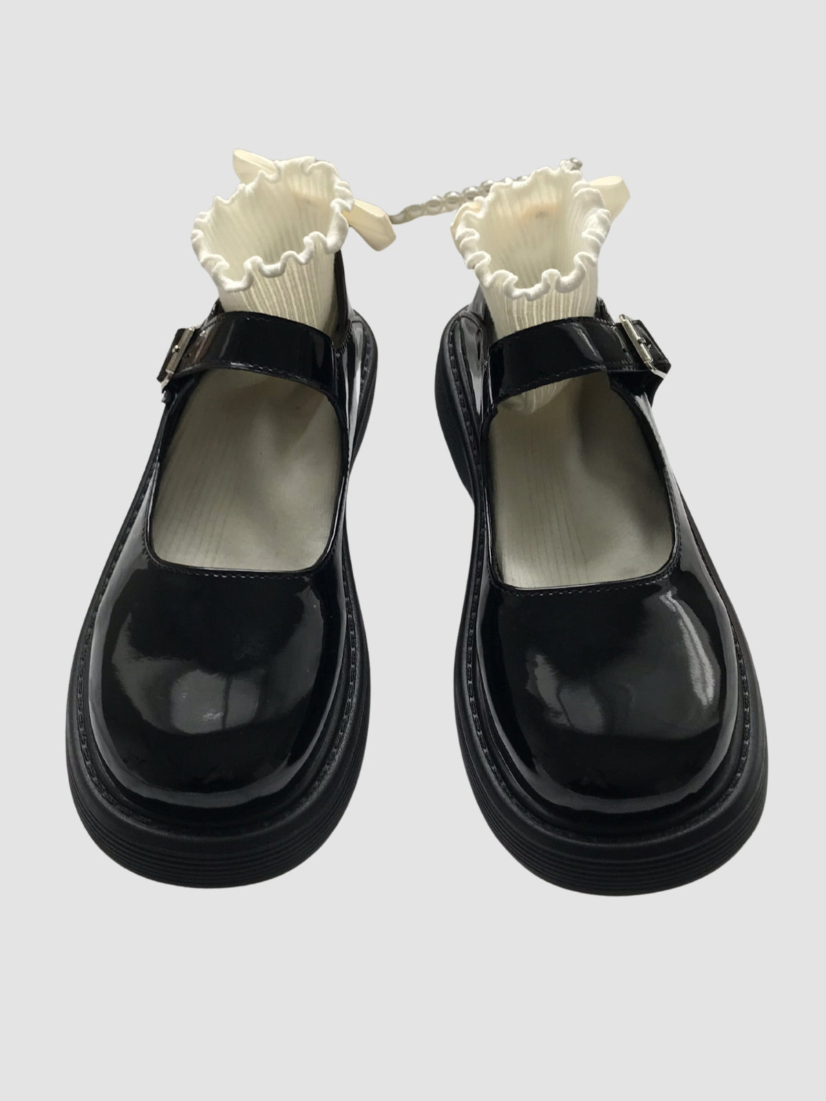 Add a touch of timeless elegance to your look with these patent faux leather shoes. Crafted from sleek faux leather with a glossy finish, they feature a chic buckle design and a round toe for a feminine silhouette. The low, comfortable heel and rubber sole ensure all-day wearability, making them perfect for both casual outings and dressier occasions. Pair them with dresses, skirts, or tailored pants for a sophisticated yet playful