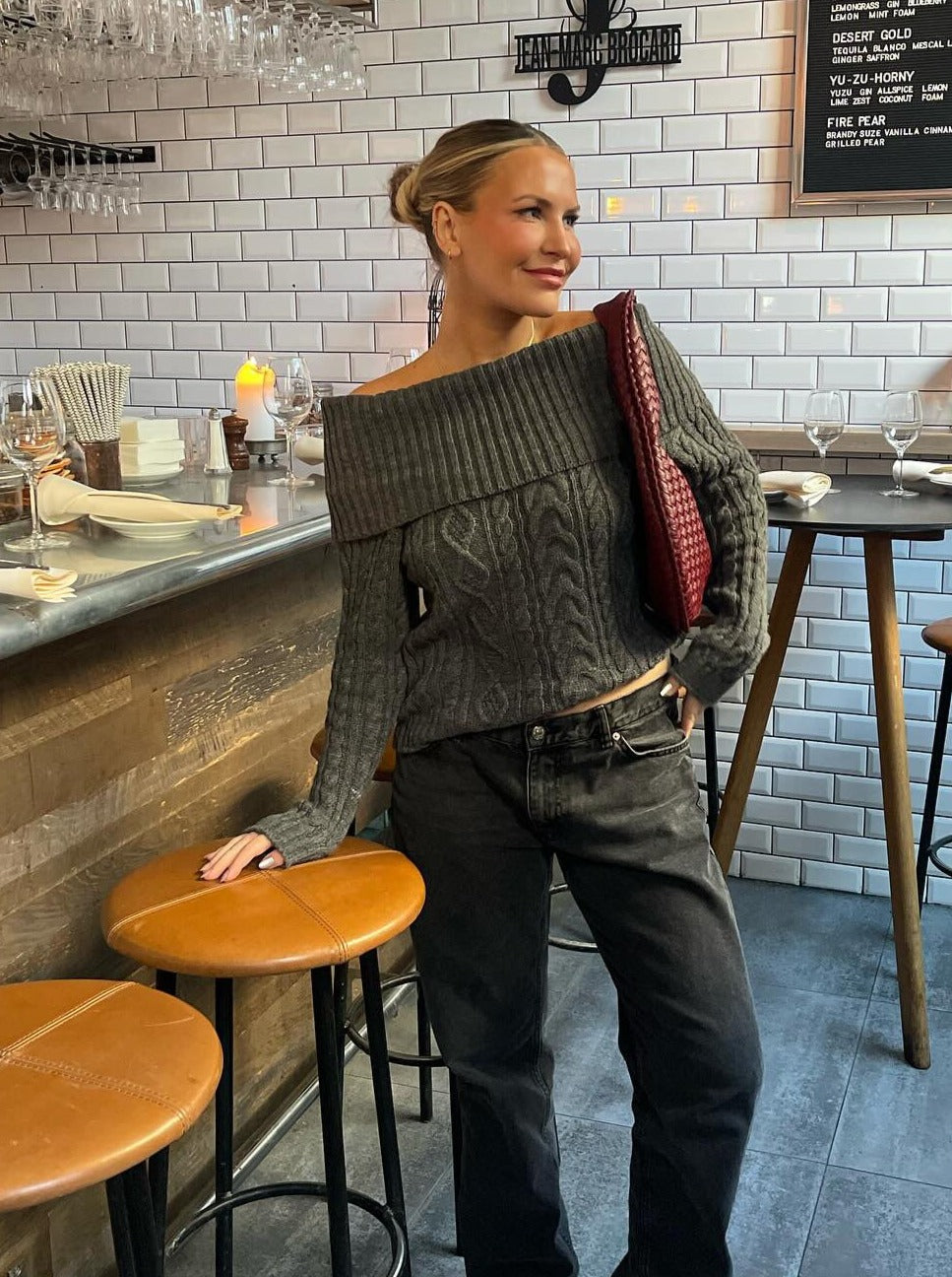 Skylar | Women’s off-shoulder knit sweater with ribbed design