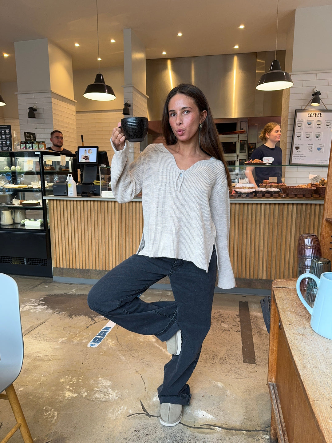 Nesta | Women’s knit sweater with v-neckline and front tie detail