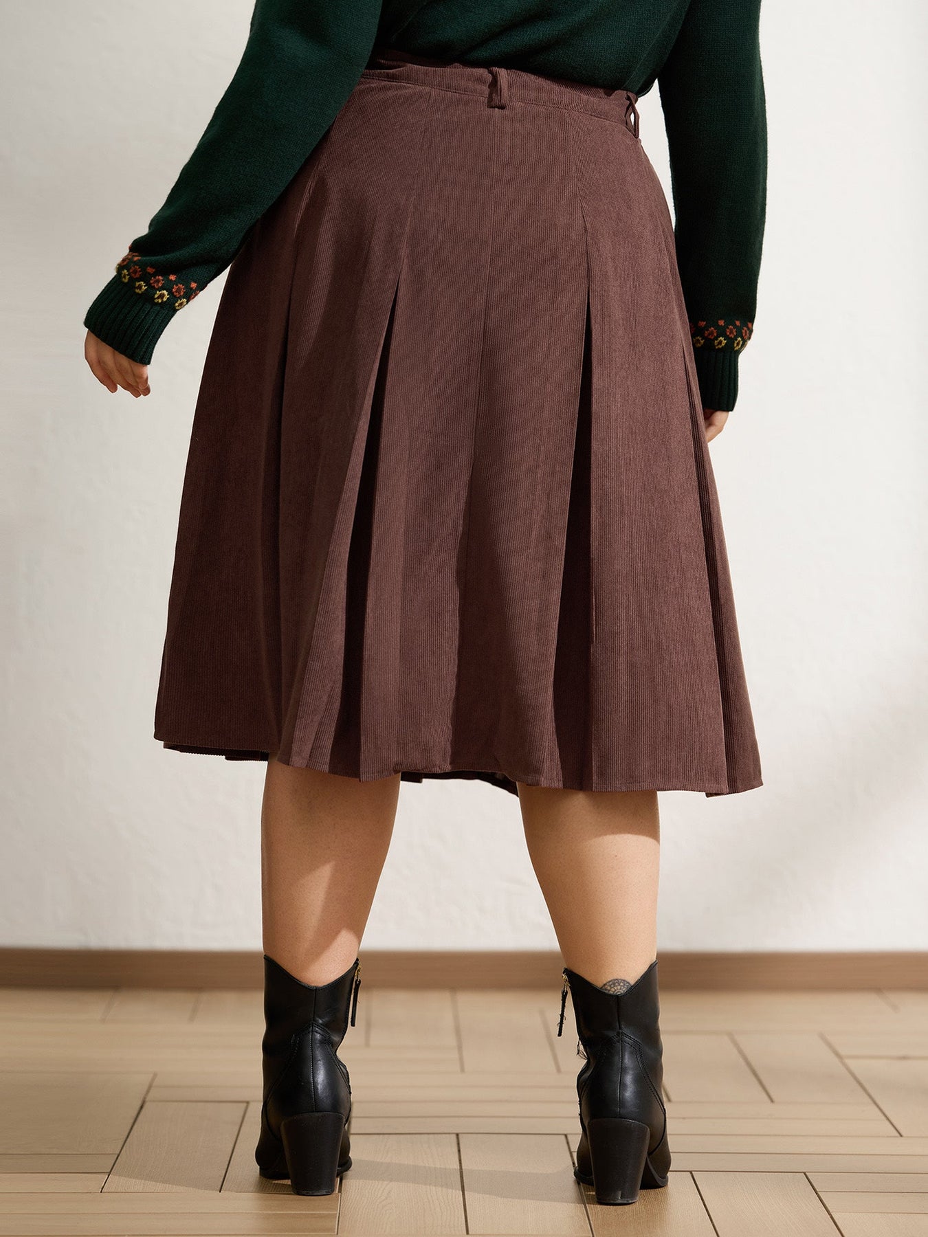 This women’s pleated waist-defining midi skirt brings classic charm and flattering movement to your look. Designed for mid and plus-size women, it features structured pleats that enhance your silhouette and create graceful flow with every step. The soft corduroy-inspired fabric offers both comfort and texture, making it the perfect choice for pairing with sweaters, blouses, or boots throughout the season.