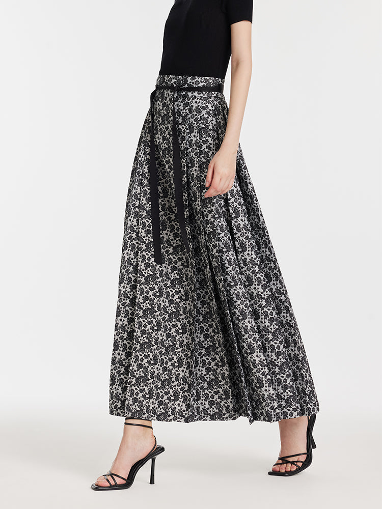 Gia | Women’s floral jacquard pleated A-line maxi skirt
